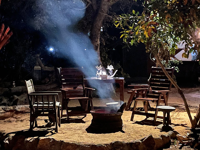 Back home there is time for drinks down by the fire pit before dinner is served. Isn't G&T the customary safari drink? And that African wine is to die for! The deliciousness never ends! After dinner it is back to our tents for an early night, followed by an early morning! And our laundry has come back, all washed, dried, and folded! (Many more photo when it doesn't take three minutes to upload each one!)